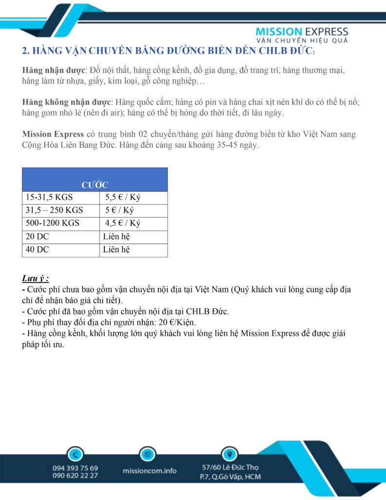 HÀNG VẬN CHUYỂN BẰNG ĐƯỜNG BIỂN ĐẾN CHLB ĐỨC