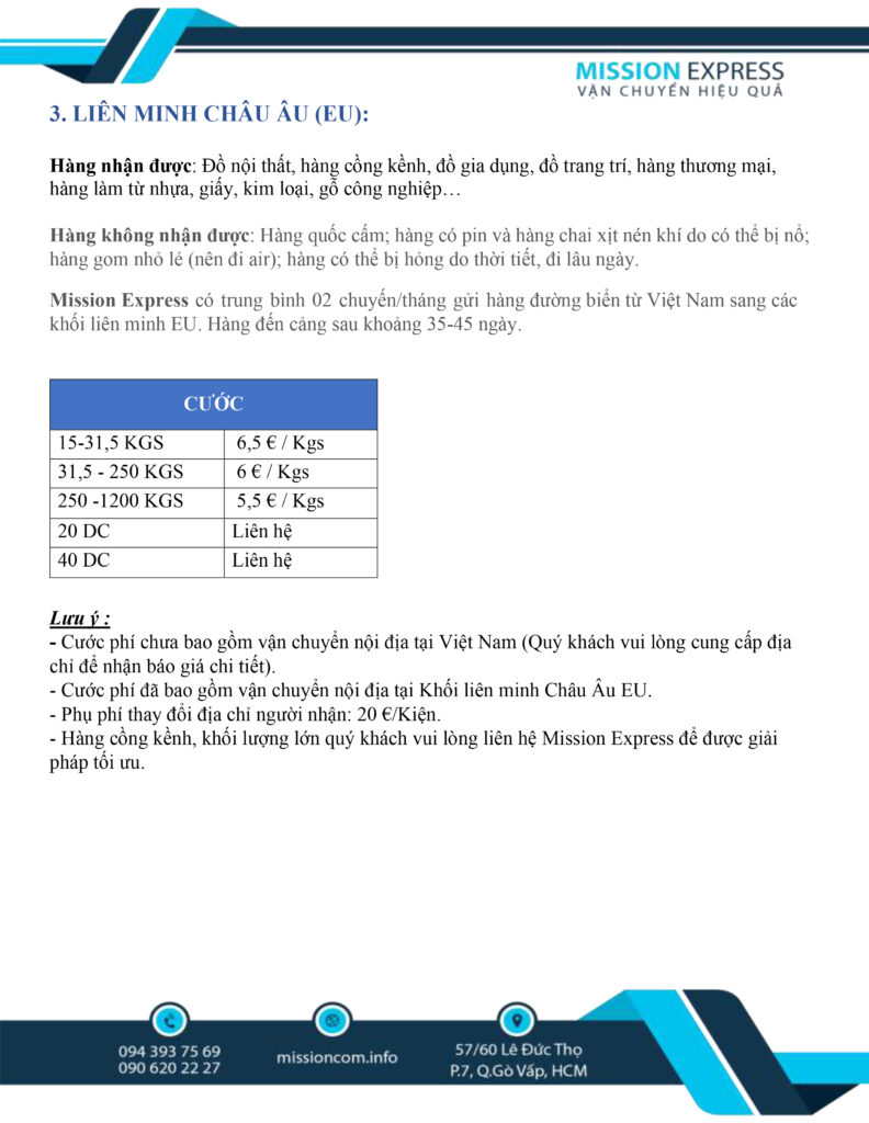HÀNG VẬN CHUYỂN BẰNG ĐƯỜNG BIỂN ĐẾN EU